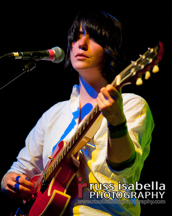 Two bands played before Sharon Van Etten: Parlor Hawk and Little Scream. Some good music, but I'm sorry to say I was mostly impatient waiting for the main act. Van Etten's set was excellent. Not surprisingly, she played quite a few songs from 'epic,' but she also played a few new songs and some from her debut. There's no way I could ever think she played long enough, but she played just about everything I wanted to hear and was kind enough to offer an encore, without her band. Oh, I didn't mention her band? Guitarist and drummer. Sorry, I don't have their names, but once again, I wasn't there to hear them play. Sharon strummed an electric guitar throughout, except for "Love More," for which she played the harmonium. The venue was great and the sound good overall, but Van Etten's guitar was too loud and her voice not quite loud enough, which was a shame because it really is all about her voice. I wish she would have played at least a few numbers with an acoustic guitar. Funniest moment of the night: Sharon was telling a story of sorts, building up to a song. Someone from the crowd yelled out "play the song!" It was kind of a high-pitched voice. Sharon said: "Who said that? No, really. I think I just got called out by a 10-year-old." It was a good-natured, quick-witted response because I'm sure I wasn't the only one who was thinking 'holy shit, she's right, that DID sound like a 10-year-old!' Most endearing: There's a moment following each of her songs when it's evident in Van Etten's eyes that she's still uncertain about her effect on her audience. It's a mix of vulnerability and doubt that quickly gives way to acceptance and gratitude. Two things are clear: she cares, and she's not taking anything for granted. For me, these moments best revealed Van Etten's connection to the crowd and were among the most intimate of the night. I'd like to think I captured at least one of these in the photos below.